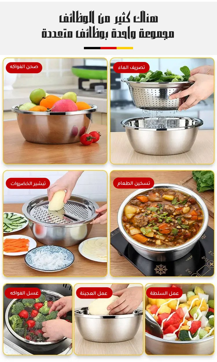 مجموعة مبشرة الخضروات الألمانية من ستانلس ستيل 304 من 3 قطع