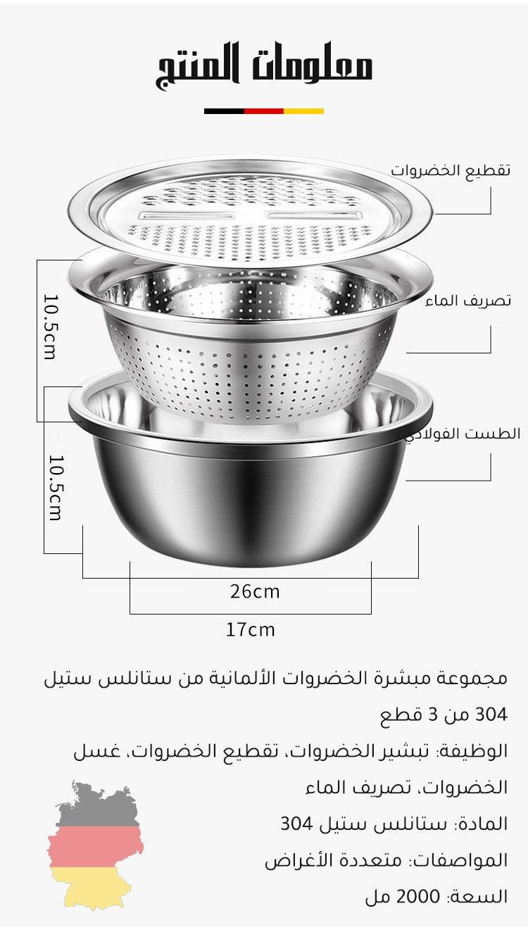 مجموعة مبشرة الخضروات الألمانية من ستانلس ستيل 304 من 3 قطع
